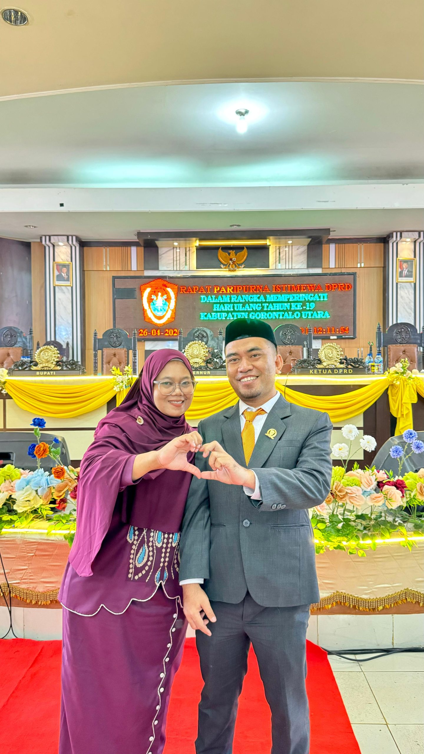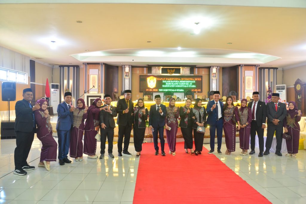 Gorontalo Utara – Anggota DPRD Kabupaten Gorontalo Utara, Windra Lagarusu, bersama Istri Ira Kasimin menghadiri Rapat Paripurna Istimewa dalam rangka memperingati Hari Ulang Tahun ke-19 Kabupaten Gorontalo Utara, yang jatuh pada 26 April 2026, menandai perjalanan daerah sejak 26 April 2007.